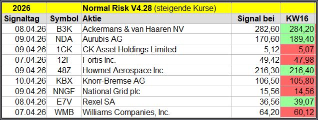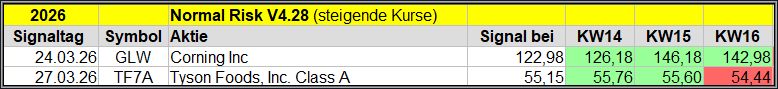 Nachfolgend die fortlaufenden Screener-Ergebnisse der vergangenen 4 Wochen anhand denen jeder selbst prüfen kann, wie erfolgreich die eigene Auswahl aus den angebotenen Signal-Werten, gewesen wäre.