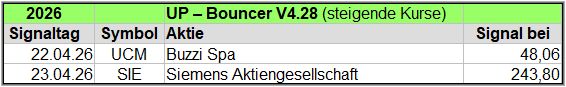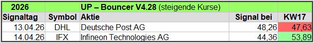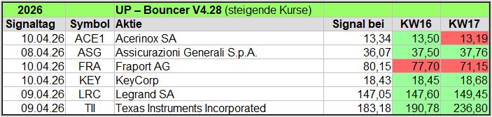 Übersicht der UP-Bouncer Signale je Woche 2026.