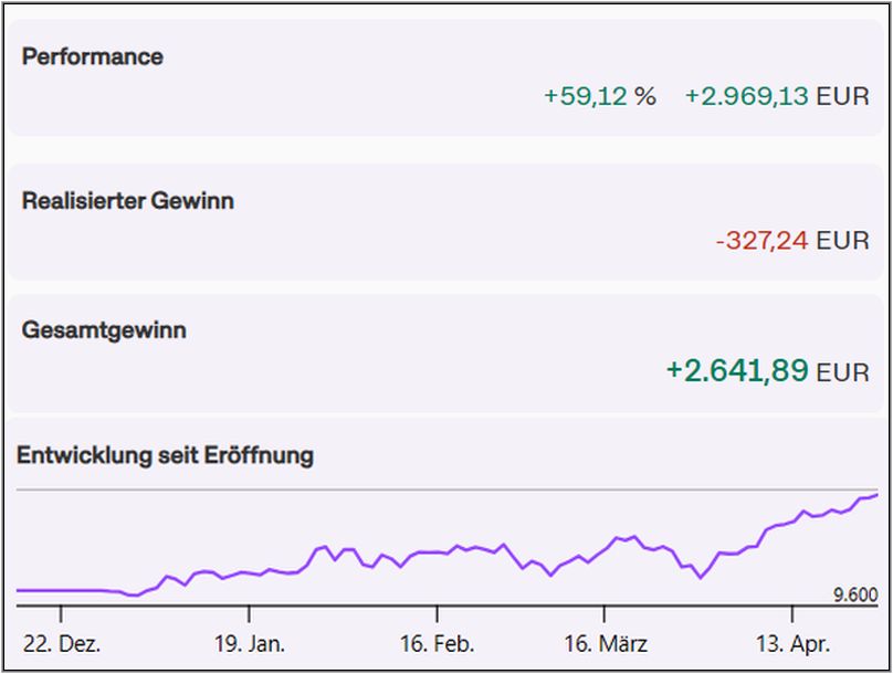 Das Muster-Depot stellt keine Aufforderung zum Kauf-/Verkauf dar, sondern dient ausschließlich meiner persönlichen Überprüfung dieser Handelsstrategie, die ich als Info für die Interessierte veröffentliche.