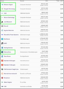 Die aktuellen Depotbestände sind grün markiert. Da alle Werte innerhalb der Top 20 liegen, ist kein Kauf / Verkauf erforderlich.
