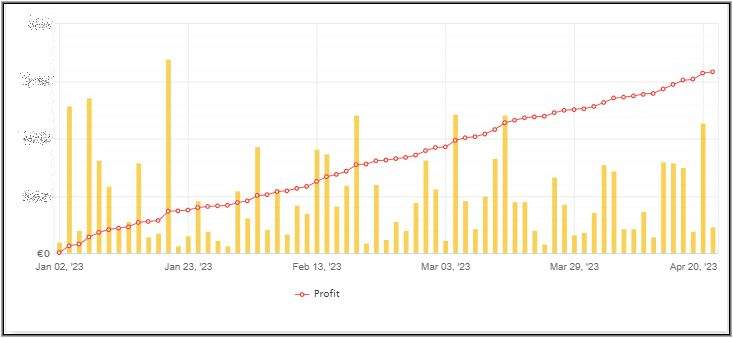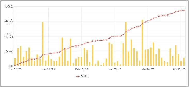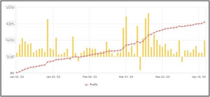 Auch in dieser Woche blieb der Gewinn im zweistelligen Bereich und konnte noch leicht zulegen. Es läuft also langsam aber stetig nach oben.