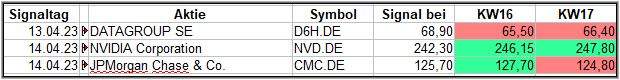 In der KW15 generierte der Screener gleich 3 Signale und ich hatte geschrieben: