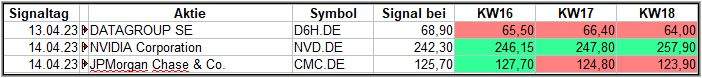 In der KW15 generierte der Screener gleich 3 Signale und ich hatte geschrieben:
