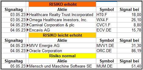 Spaßeshalber verfolge ich während den nächsten 4 Wochen einmal alle in dieser Woche gescreenten Werte und wer weiß, vielleicht überraschen die risikoreicheren Signale ja positiv![]()