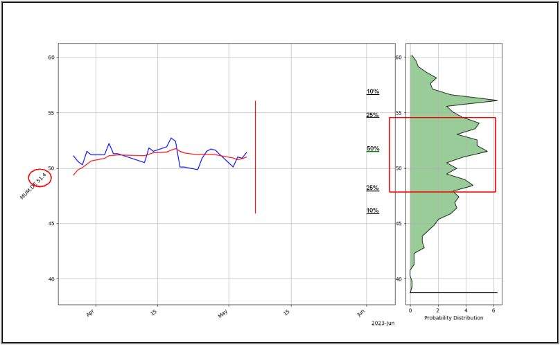 - 51,50€ (~1% im Plus) ~50% Wahrscheinlichkeit