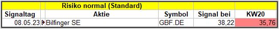 Rückblick: In dieser Woche gab es deswegen nur ein einziges Signal, von Bilfinger, das wir die nächsten 4 Wochen beobachten werden.
