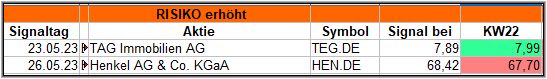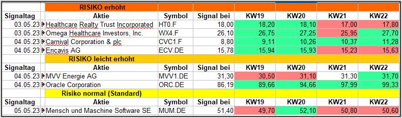 - Bei den Signalen mit leicht erhöhtem Risiko liegen nach der 4. Woche sowohl MVV Energie als auch Oracle im Plus.