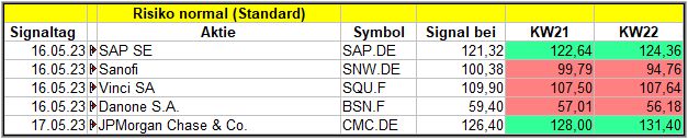 Nun kommen wir zum Update der vorigen Screener-Ergebnisse aus der KW18, KW19, KW20 und KW21, bezogen auf die Schlusskurse in KW22/23. KW17/23 fällt in dieser Woche weg.