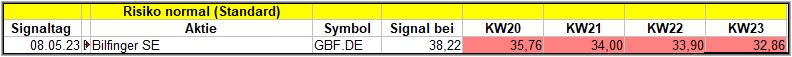 Rückblick: In dieser Woche gab es nur ein einziges Signal, von Bilfinger, das wir die nächsten 4 Wochen beobachten werden.