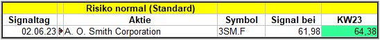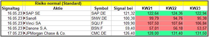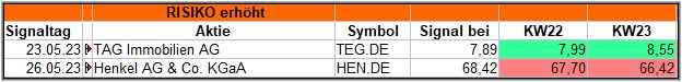 Nun kommen wir zum Update der vorigen Screener-Ergebnisse aus der KW19, KW20, KW21 und KW22, bezogen auf die Schlusskurse in KW23/23. KW18/23 fällt in dieser Woche weg.