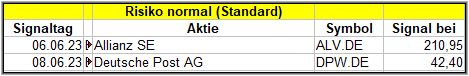 Rückblick: In den USA kam es zu einer Verschiebung der Schuldenobergrenze bis 2025, wobei die Beobachter damit rechnen, dass diese dann endgültig aufgehoben werden könnte, weil das Kasperletheater (wie ich es nenne) völlig sinnlos ist und doch jedes Mal zu einer erneuten Erhöhung führte. So begannen die Indizes am Donnerstag/Freitag etwas deutlicher anzusteigen, nachdem die Anleger zuvor noch unentschlossen waren. Im Standard-Screener kam es diese Woche nur zu einem Signal, das am Freitag generiert wurde.