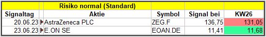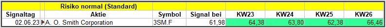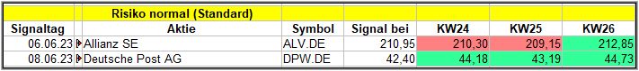 Nun kommen wir zum Update der vorigen Screener-Ergebnisse aus der KW22, KW23, KW24 und KW25, bezogen auf die Schlusskurse in KW26/23. KW21/23 fällt in dieser Woche weg.