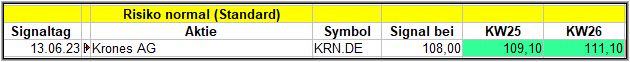 So gab es beim Standard-Screener mit Krones, nur ein Signal, während die risikoreicheren Screener auch nur 3 Signale generierten, die ich hier aber nicht betrachte.