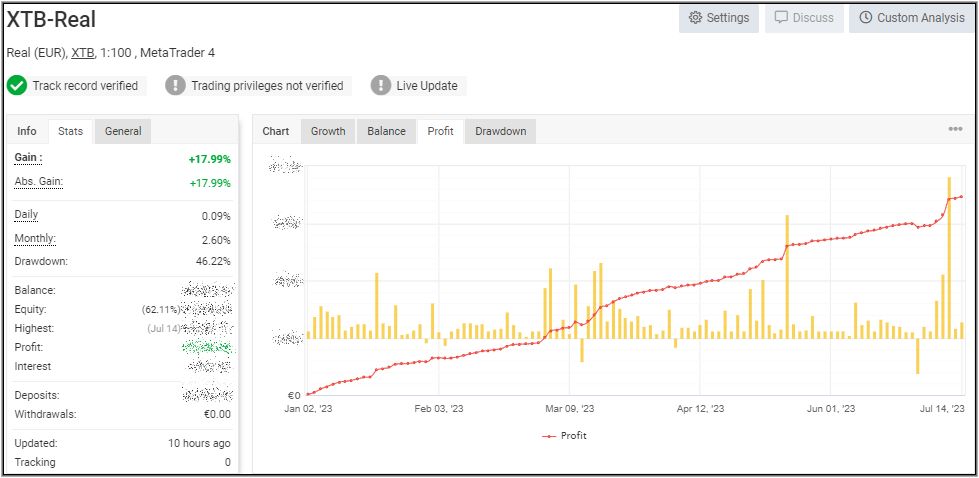 Ich weiß, der Verlauf der 3 EA´s erscheint zwar ziemlich langweilig, doch mir ist das völlig egal und ich lasse das einfach laufen. Ich schaue nur morgens und abends nach, ob der Laptop noch läuft, weil meine Katze gerne auf diesem schläft und schon öfters Stecker entfernt hat. Ansonsten schaue ich nur für diesen wöchentlichen Beitrag nochmal danach, wie der Stand auf Myfxbook ist, wo alles automatisch mitgeschrieben wird.