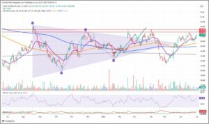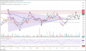 In dieser Woche gelang der Anstieg über die EMA20 bei 46,57€ und damit wird erneut der Widerstandsbereich bei 47,90€ bis 48,40€ zum Ziel.