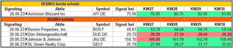 Was haben die anderen Screener-Signale aus der KW26/23, während der letzten 4 Wochen erreicht?