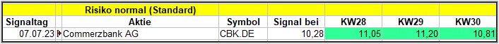 Rückblick: In dieser Woche gab es ab Mi/Do etwas Druck auf die Börsen, da China eine Ausfuhrdrosselung für bestimmte Seltene Erden ins Spiel brachten, nachdem die USA den Niederlanden „untersagte“, dass ASML Maschinen nach China geliefert werden dürfen, die zur Chip-Produktion dienen. So gab es mit der Commerzbank nur 1 Signal, das am Freitag generiert wurde. Bei Banken bin ich eher etwas skeptisch und so bin ich besonders gespannt, was daraus wird.