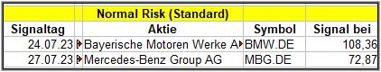 Im Standard-Screener sahen wir Signale von BMW und Mercedes Benz, also gleich von 2 Automobilbauern aus Deutschland, was angesichts der Diskussion um Marktgewinne chinesischer Hersteller, heiß diskutiert und dem damit eigentlich entgegenstehen sollten. Mal sehen, wie das mit den beiden Werten weitergeht.