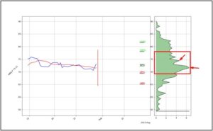 Achtung es handelt sich NICHT um eine Marktvolumenanzeige, sondern um eine mathematische Prognose. Auf Basis der letzten 1000 Kurse ergibt sich für den Wert aktuell die rechnerisch höchste Wahrscheinlichkeit im Bereich des eingezeichneten, roten Rechtecks, bzw. der höchsten Spitze innerhalb des Rechtecks.