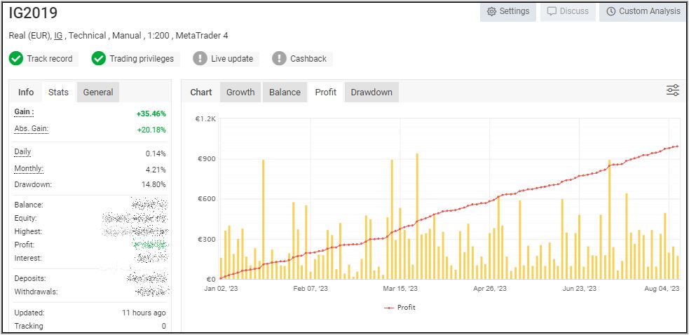 Ich weiß, der Verlauf der 3 EA´s erscheint zwar ziemlich langweilig, doch mir ist das völlig egal und ich lasse das einfach laufen. Ich schaue nur morgens und abends nach, ob der Laptop noch läuft, weil meine Katze gerne auf diesem schläft und schon öfters Stecker entfernt hat. Ansonsten schaue ich nur für diesen wöchentlichen Beitrag nochmal danach, wie der Stand auf Myfxbook ist, wo alles automatisch mitgeschrieben wird.