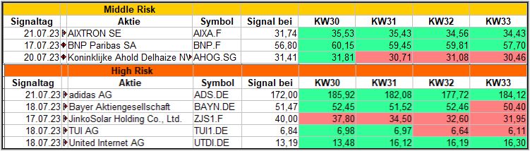 4 Wochen Rückblick auf „Middle Risk“ und „High Risk“ Signale