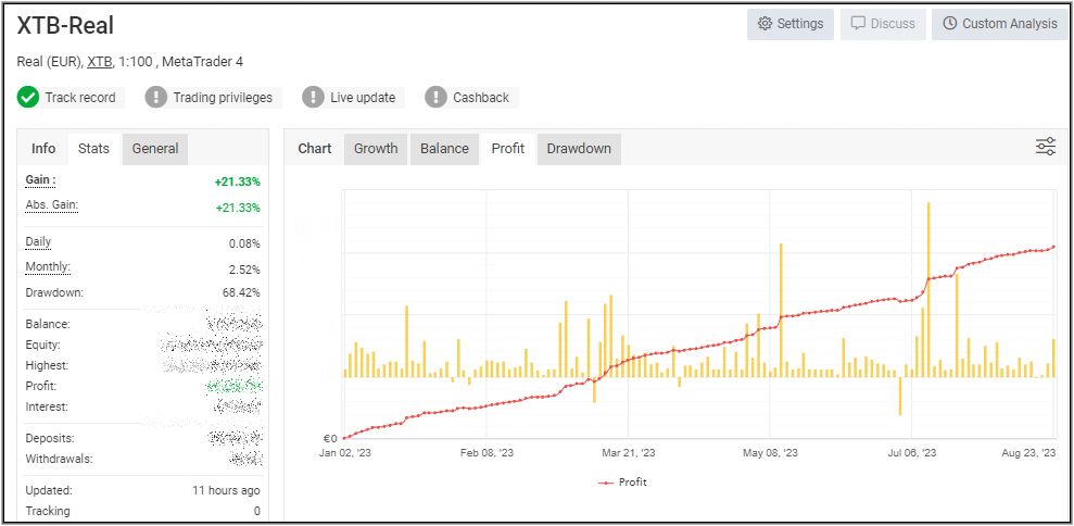 Ich weiß, der Verlauf der 3 EA´s erscheint zwar ziemlich langweilig, doch mir ist das völlig egal und ich lasse das einfach laufen. Ich schaue nur morgens und abends nach, ob der Laptop noch läuft, weil meine Katze gerne auf diesem schläft und schon öfters Stecker entfernt hat. Ansonsten schaue ich nur für diesen wöchentlichen Beitrag nochmal danach, wie der Stand auf Myfxbook ist, wo alles automatisch mitgeschrieben wird.