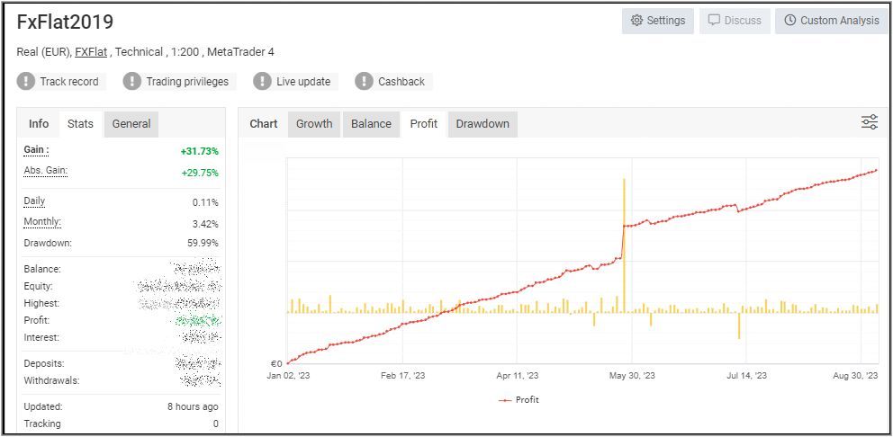 Der Profitfaktor hat sich weiter leicht, von 2,35 auf 2,37 erhöht und es ging um rund 300 Pips nach oben. Der Gewinn liegt weiter über 31% auf Jahressicht (YTD), aber es geht zunehmend schleppend voran, weil die Unsicherheiten im Zinsbereich wieder zugenommen haben. Trotzdem bin weiterguter Dinge, dass das Jahresziel von +35% noch überschritten werden kann.![]()